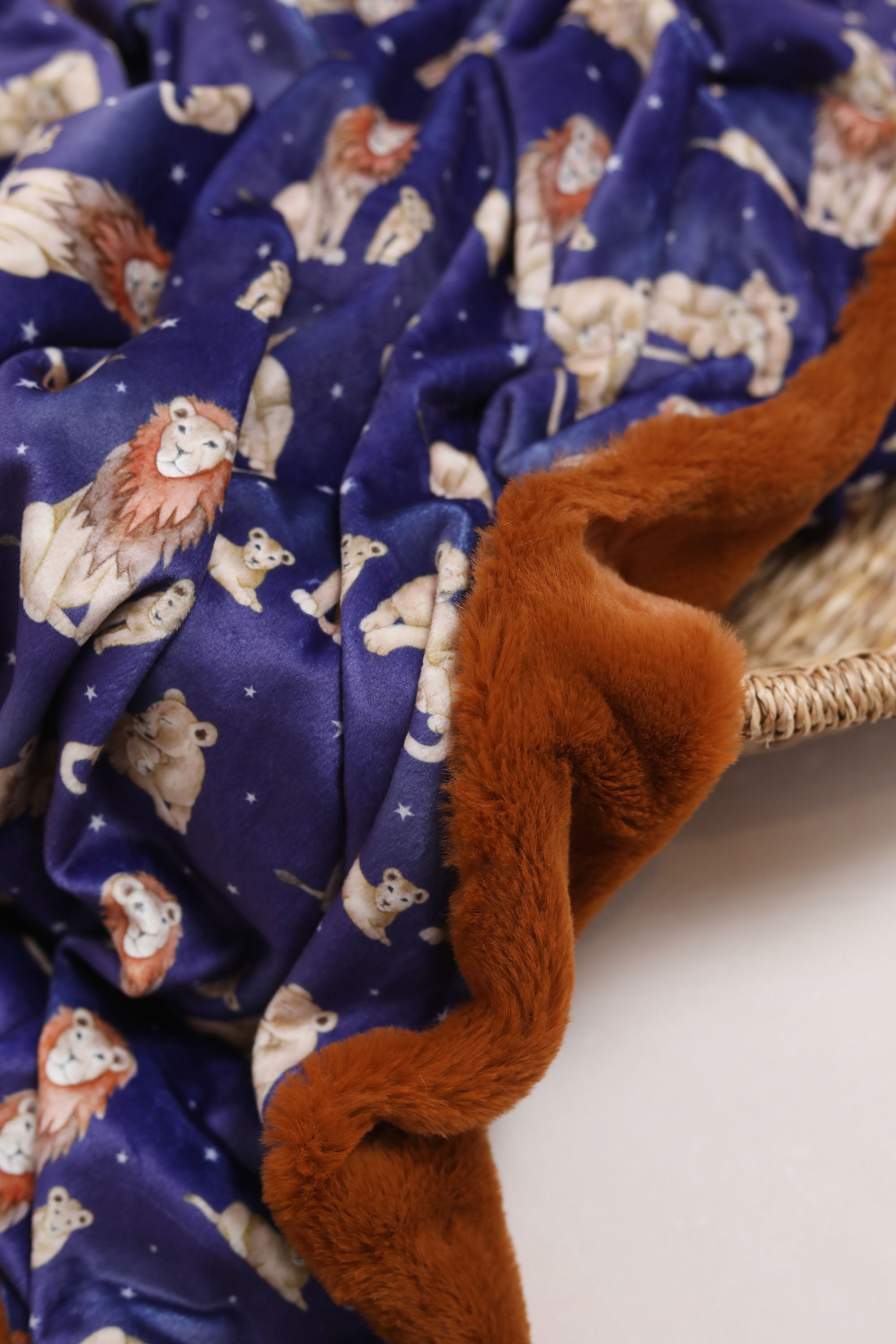 Due to the two fabrics being different compositions — the minky fleece being stretchy and the faux fur not — the comforters will not be perfectly symmetrical. It’s part of their handmade charm and does not affect use or snuggle factor!
